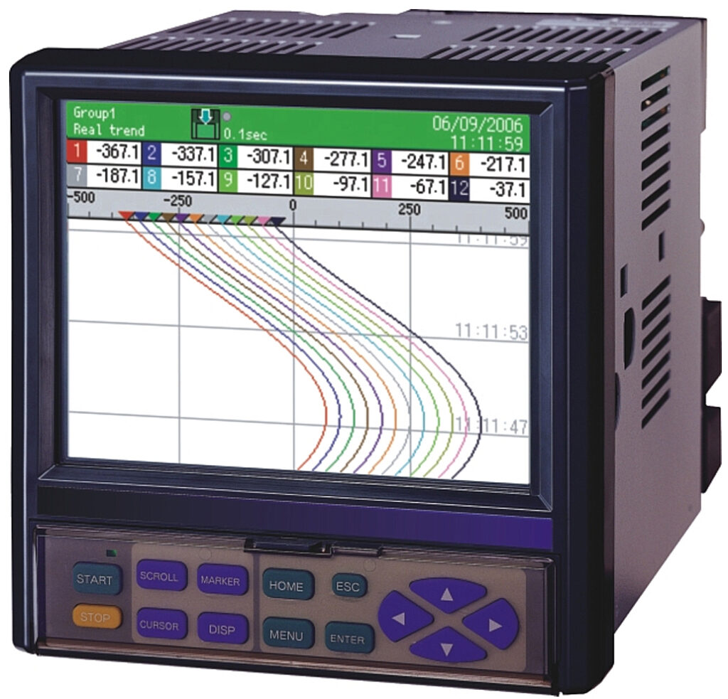 The ABB C1900RC circular chart recorder & controller is fully programmable and combines two PID control loops with 4-pen recording. The C1900RC’s straightforward operator controls and robust construction (NEMA 4X, IP 66) make it suitable for a variety of industrial environments. This ABB recorder’s high visibility 6-digit display provides a clear indication of up to four process values simultaneously and active alarms are signaled by flashing LEDs below the main display.