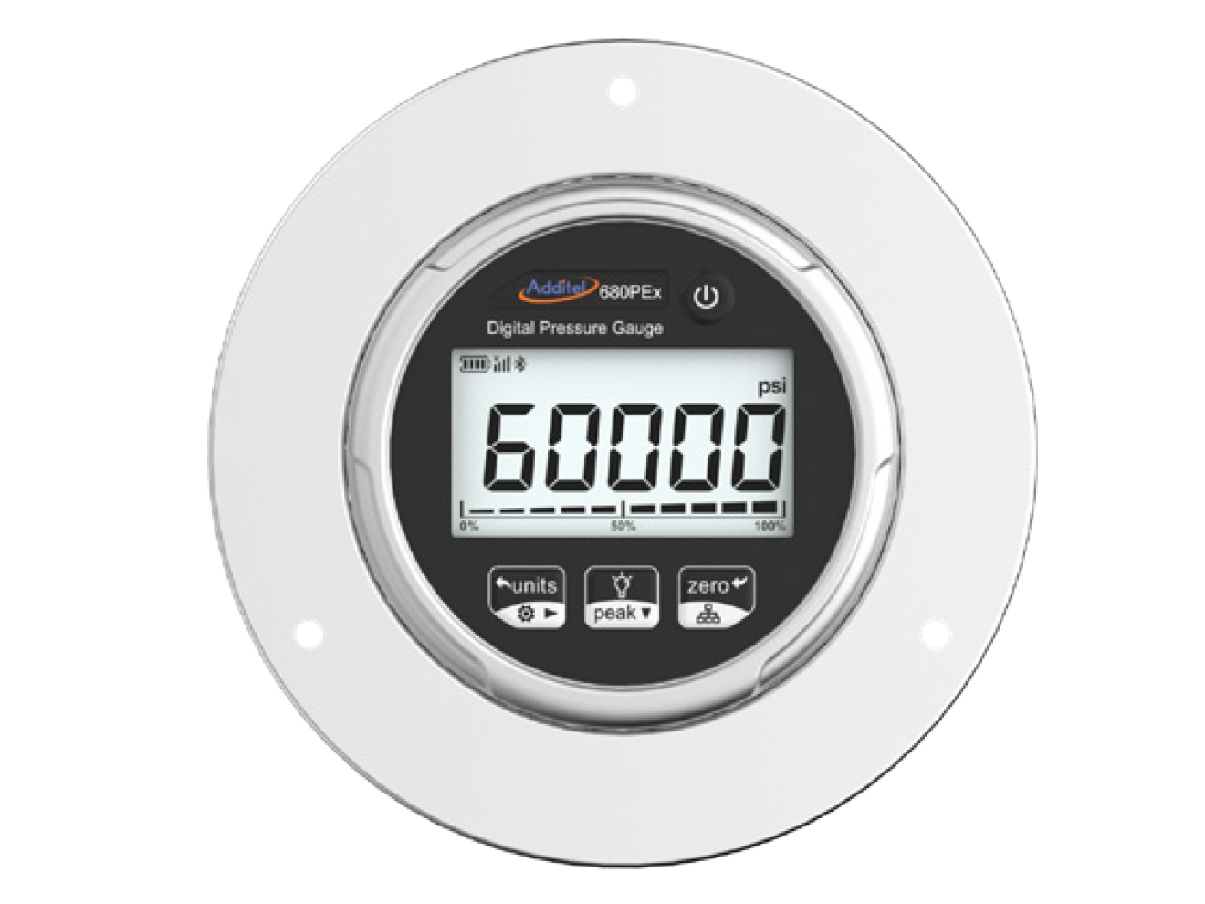The Additel ADT680P Digital Pressure Gauge is designed to be used in panel mount applications. With Bluetooth technology and opt-in data logging included, the ADT680P series provides durable, IP67 rated gauges built for the field as well as lab environments. The ADT680P is built with a stainless outer shell to protect the durable sensor within, to provide reliable reads in the long term. If working in an area with potentially explosive materials, see the ADT680PEx option.