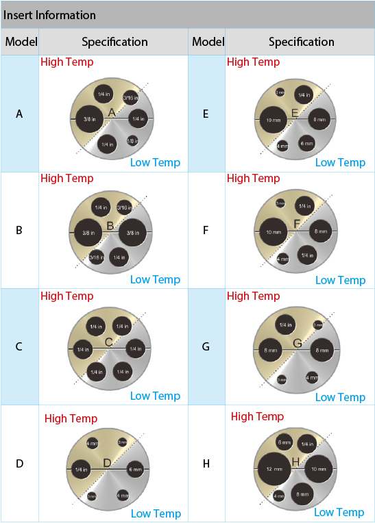 Insert A: 3/8in, 1/4in x3, 3/16in and 1/8in