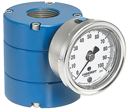 The Ashcroft 82 threaded isolation ring is designed to protect measuring devices such as pressure gauges, switches and transducers from direct contact with process media. The isolation ring is threaded in-line with process piping, and uses a 360-degree flexible liner that eliminates the potential for clogging or fouling while transmitting pressure hydraulically to the instrument. The “ring” design eliminates process accumulation, assuring accurate pressure readings.