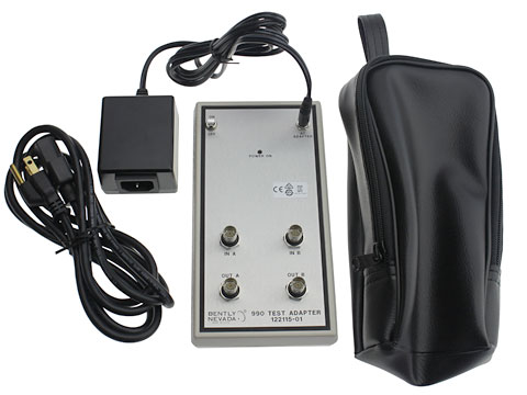 The Bently Nevada 990/991 test adapter inverts and isolates the PROX OUT signal from the 990 vibration transmitter so that you can connect 990 transmitters to ac-powered diagnostic equipment. The adapter modifies the PROX OUT signal so that it matches our standard Proximitor sensor signals by performing these functions: