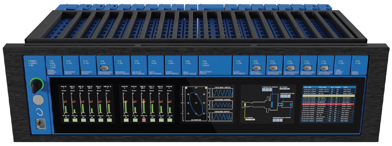 The Orbit 60 is smaller than prior generations of Bently Nevada monitoring systems. This means less space is required for the same number of channels. That space savings translates to cost savings through cabinets that can be more densely populated and more efficient use of panel space. The 3U, 19in rack can hold approximately the same number of channels as 3500 in half the space. The 6U version holds more channels than 3500 and fits in exactly the same space, allowing you to reuse panel cutouts without modification.