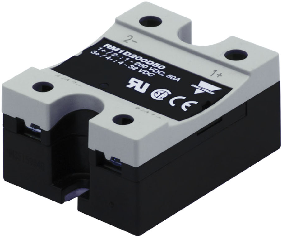 The Carlo Gavazzi RM1D solid state relays expands Carlo Gavazzi’s range of DC solid state switching solutions up to 100A for supply voltages up to 60 VDC, up to 50 A for supply voltages of maximum 200 VDC and up to 10 A for supply voltages of maximum 500 VDC. This new range is suitable for panel mounting or for mounting on a heatsink. The switching of the RM1D is controlled by a DC voltage in the range of 4 to 32 V. An LED indicates control voltage presence on the SSR.