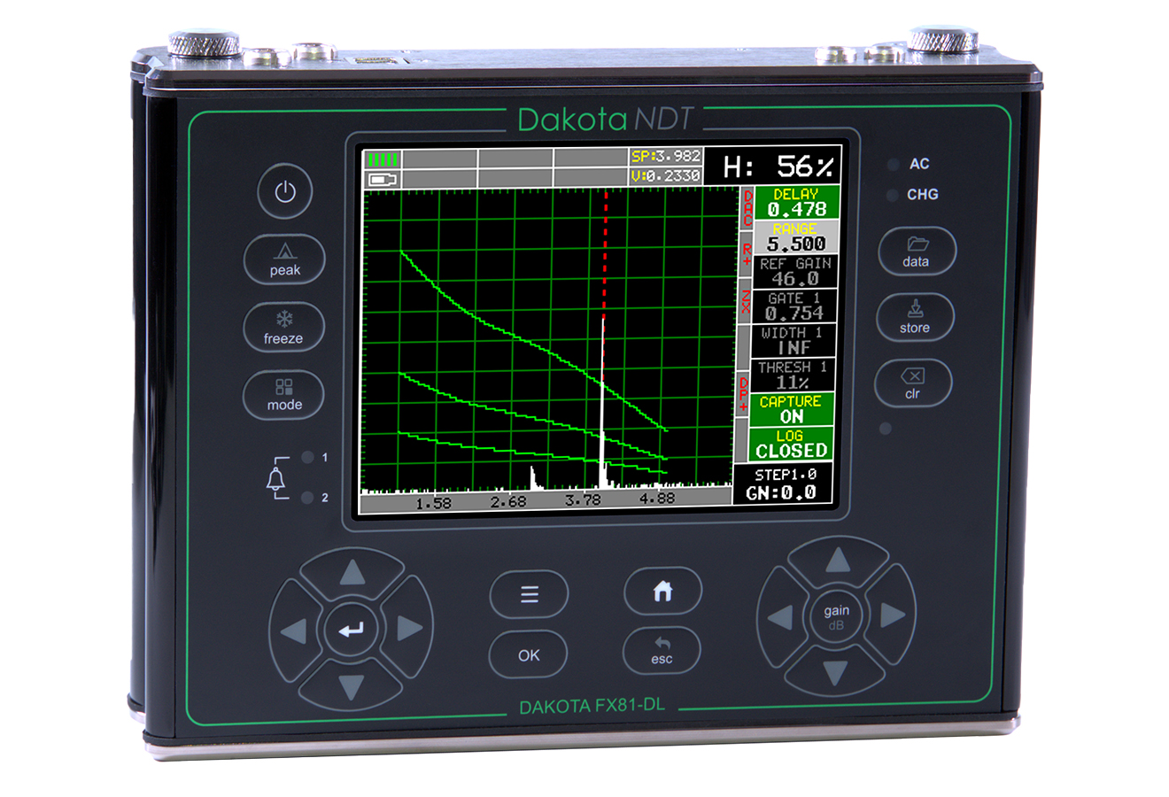 The Dakota FX80 series flaw detector has a 6Gb internal memory and an external SD slot that allows up to 64Gb with full data logging via RS232 data output to DakMaster data management software.