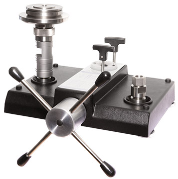 The pressure is set via an integrated, finely adjustable, precision spindle pump. As soon as the measuring system reaches equilibrium, there is a balance of forces between pressure and the force generated by the mass applied over the area of the piston. The quality of the piston / cylinder system ensures that this pressure remains stable over several minutes so that the device under test can be calibrated or adjusted.