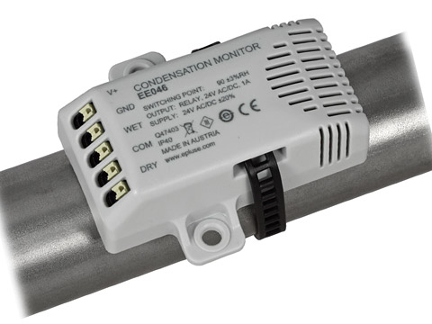 The E+E EE046 Condensation Monitor is designed to monitor the formation of condensation on chilled ceilings or to prevent condensation at critical spots of heating, ventilation and air conditioning systems. It is also used as a dew point monitor for systems operating near the dew point.