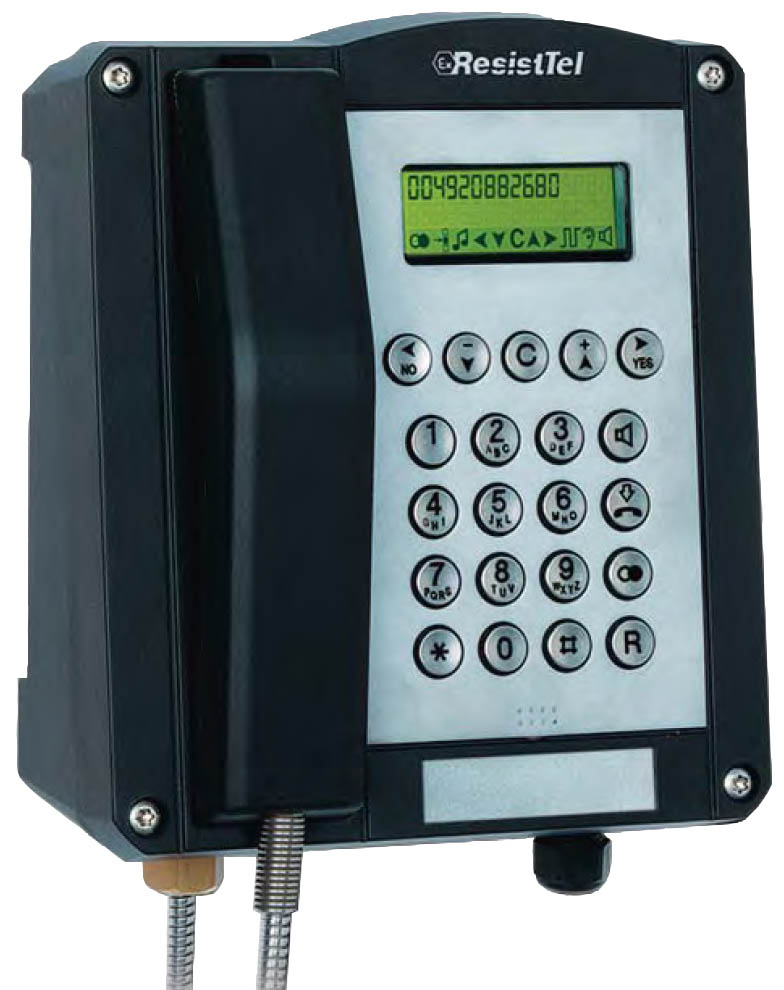The Eaton FHF Ex ResistTel hazardous area telephone is specially designed for applications in the petrochemical industry, as well as offshore installations, mills and port facilities. It is resistant to high temperature differences, humidity, sea water, dust, extensive mechanical strain and is certified for areas susceptible to explosive dusts and gases. It is equipped with a 21-key stainless steel keypad that has been especially designed for use with gloves.