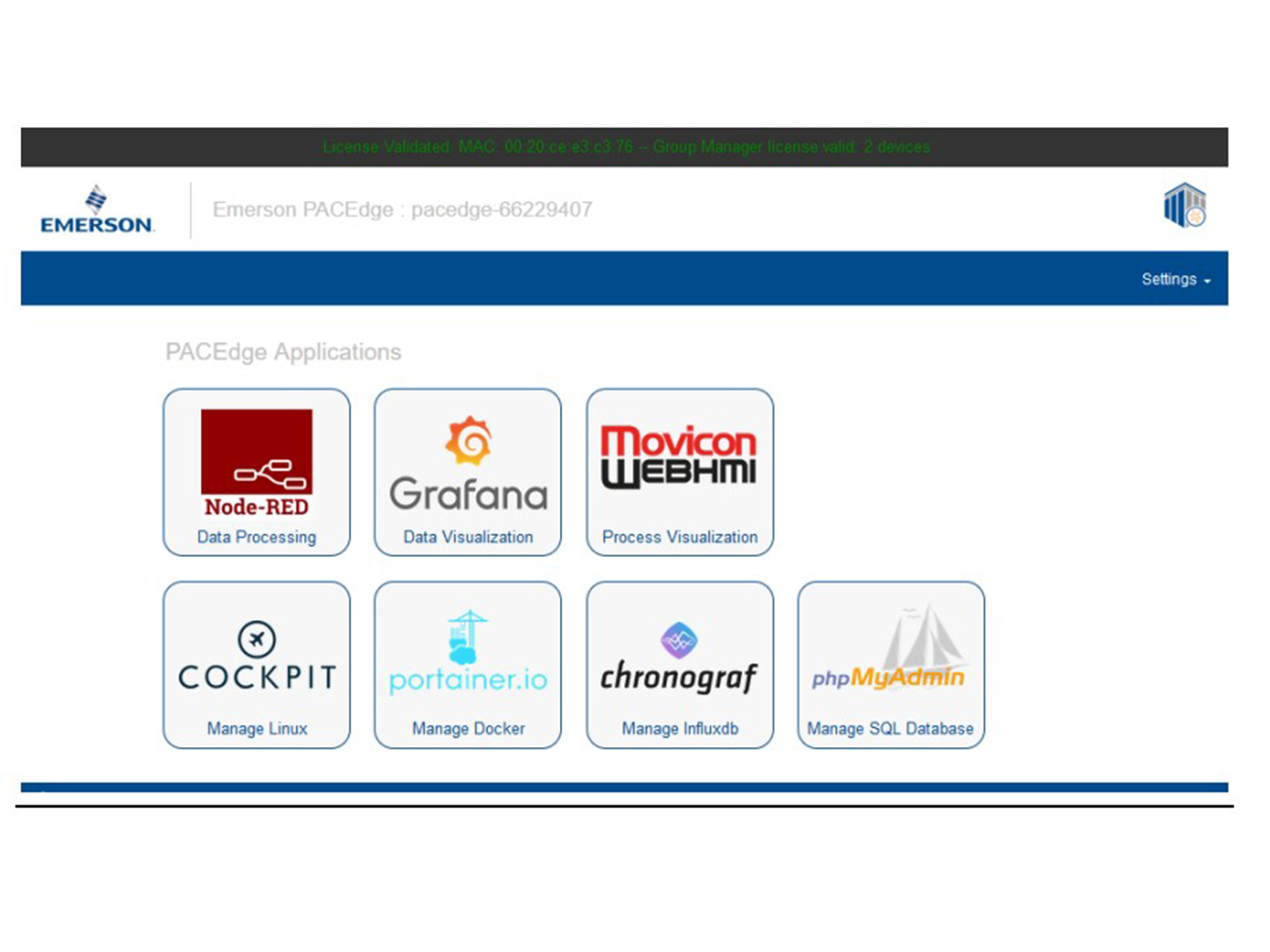 PACEdge is an optional software suite upgrade that provides all aspects of edge processing to simplify your IIoT application development, deployment, and administration. PACEdge includes pre installed applications for visualization and logging. Most popular PACEdge Applications are Node-RED, Grafana, chronograf, and phpMyAdmin.