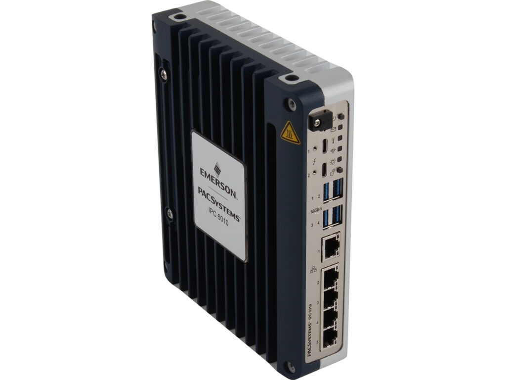 The Emerson PACSystems IPC 7010 Industrial PC is an AI-ready platform that delivers high-performance computing and graphical capabilities in a ruggedized package. This computing platform boasts high reliability and a long deployment life thanks to fanless cooling and soldered memory. The IPC 7010 is powered by an embedded Intel Core microprocessor, supported by up to 32GB of RAM. It also features five 2.5GB Ethernet interfaces and industrial-grade high-speed SSD storage, ensuring that industrial applications run smoothly even in the harshest environments. The IPC 7010 model supports up to three field-upgradable PCIe slots, allowing the unit to evolve with changing application requirements.