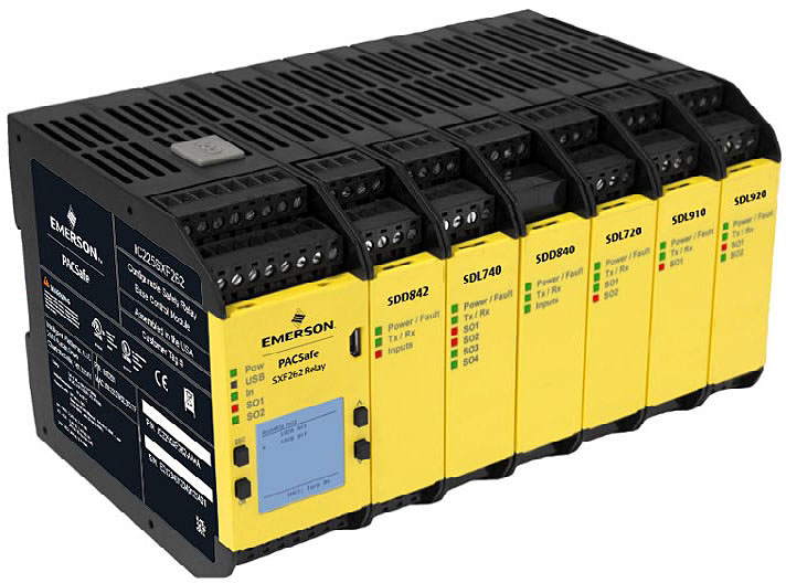 The Emerson PACSafe configurable safety controllers are designed for machine automation applications requiring integrated SIL3 machine safety with multiple coordinated safety sensors for a variety of industries like packaging, food and beverage, life sciences, and manufacturing. The PACSafe configurable safety controllers easily scale from small to complex machines and provide an intuitive graphical-based interface for configuration and programming, easy integration to Emerson’s PACSystems and VersaMax controllers over Industrial Ethernet, and fast, safe state reaction times. These qualities result in reduced development and commissioning times and smaller overall machine sizes.