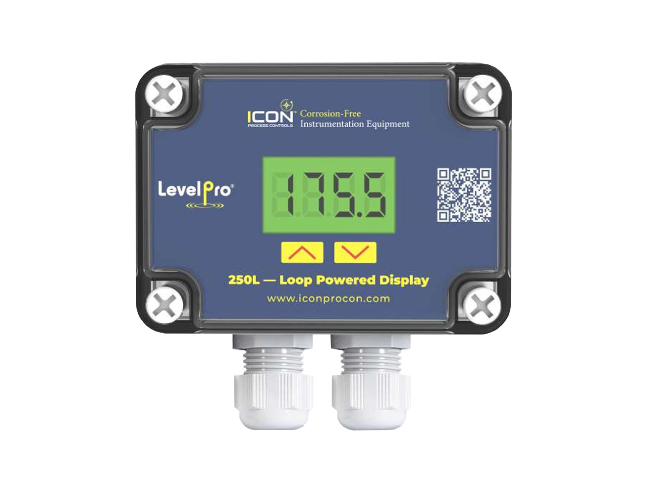 The ICON LevelPro ITC 250 Level Display is all-plastic and corrosion-resistant. All cord grips are included for both the loop and battery-powered options. The display is wall-mounted and encased in polycarbonate material. The battery-powered version includes a momentary or adjustable relay timer.