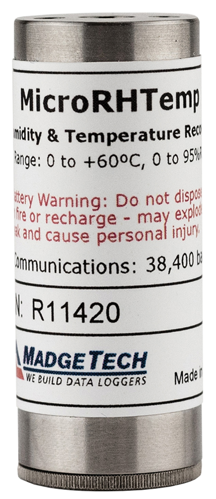 The MicroRHTemp features a real-time clock to ensure that all data is time and date stamped. The non-volatile solid state memory storage provides maximum data security even if the battery is discharged. It’s ultra-miniature size allows it to be used in the smallest spaces. The MicroRHTemp can be started and stopped directly from your computer, and makes data retrieval quick and easy. Simply plug it into an empty COM port and the Madgetech data logger software does the rest.
