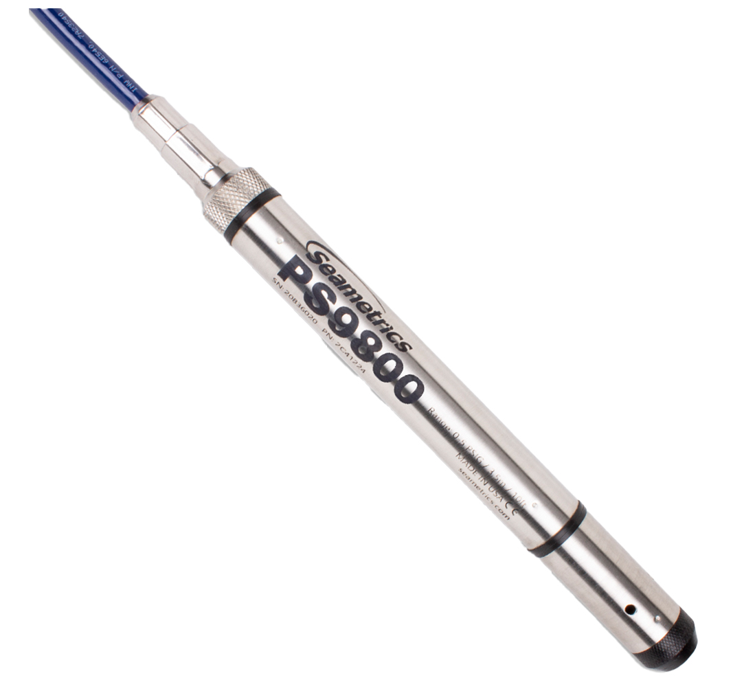 The Seametrics PS9800 analog pressure sensor measures pressure and can be configured to measure temperature. It is thermally compensated for volatile conditions – ideal where water temperatures vary, such as in streams or in industrial tank applications. It includes a reverse polarity protection as well as designed with built-in transient protection. Optional lighting protection is available. This sensor is calibrated with patented calibration procedures and NIST traceable equipment.