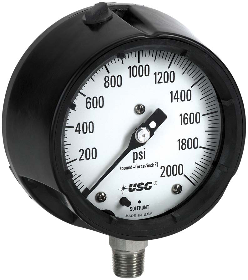 The US Gauge Model 1980 pressure gauge has a PET turret-style case for chemical and petrochemical processing applications. The PET material gives this case superior impact strength and a broad spectrum of chemical resistance. The gauge also has brass/phosphor bronze wetted surfaces, which is a lower cost option in pressure gauge applications that do not need 316 SST or Monel.